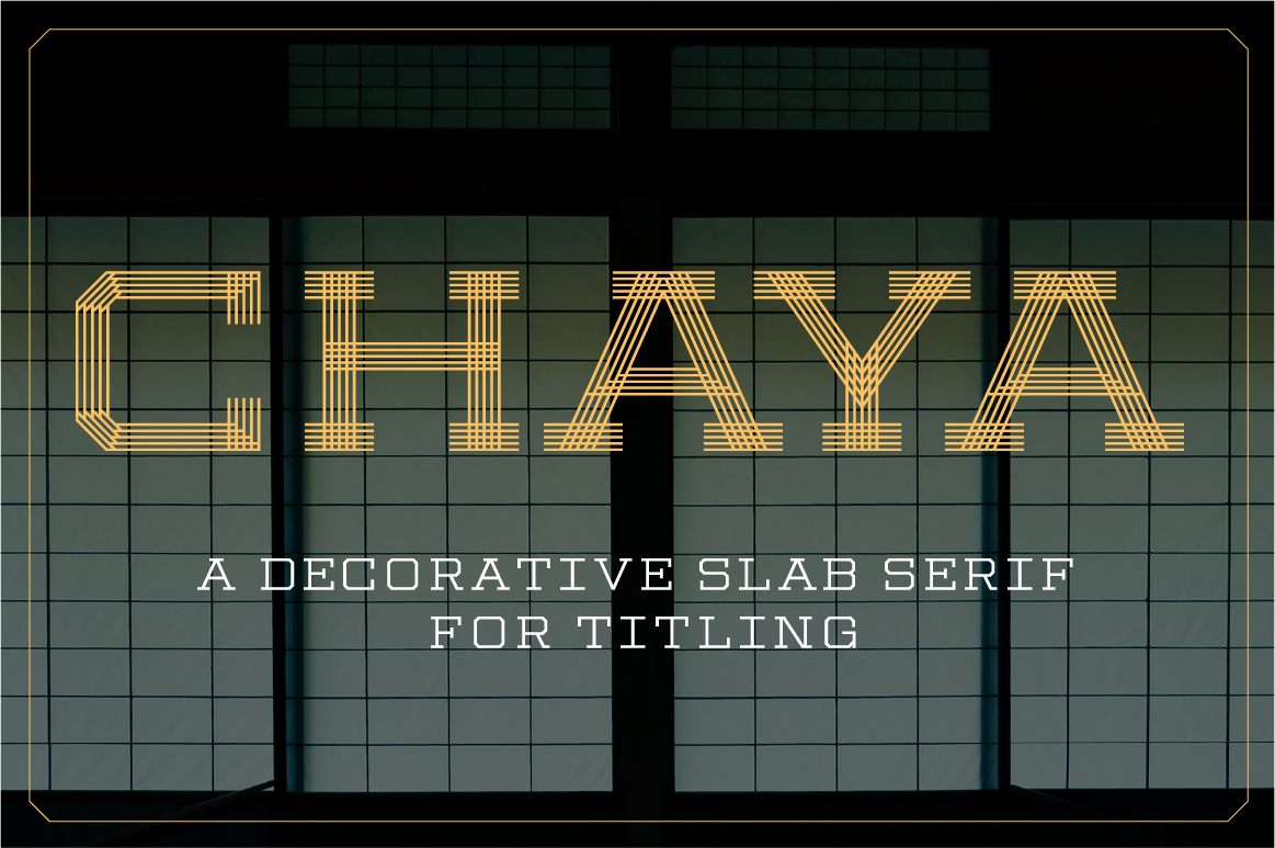 Inspired by the rice straw tatami mats of Japanese tea houses. Chaya has a refined yet bold look and is meant to be used for titles and at large sizes.