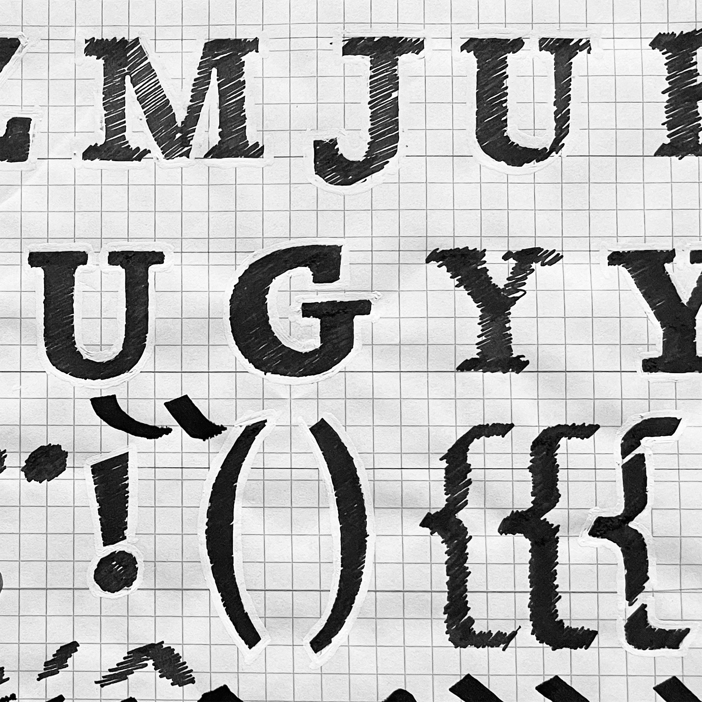 Further development of upper case and some punctuation — trying to figure out as many details before digitizing |