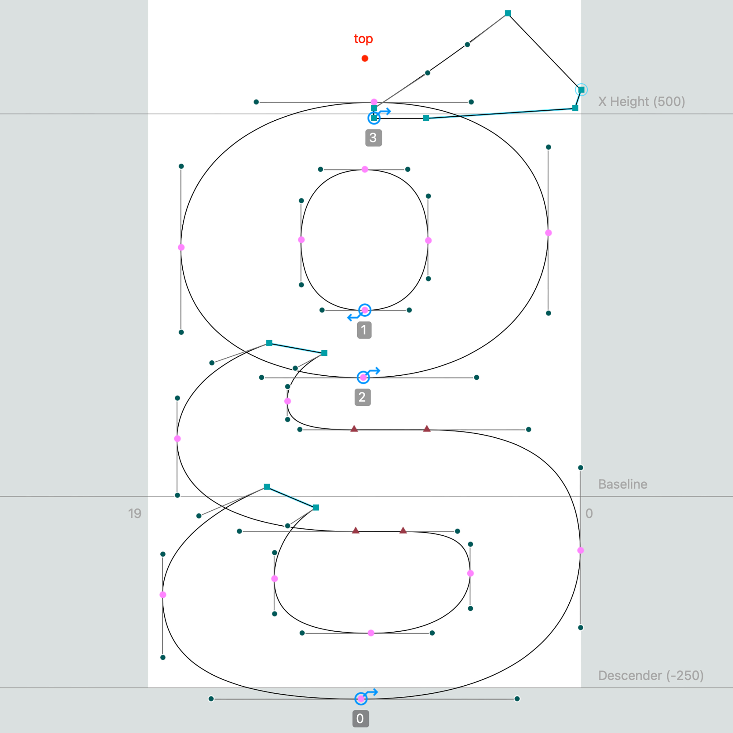 Drawing and refining curves in font design software — going through many iterations to get to the final design lorem ipsum |