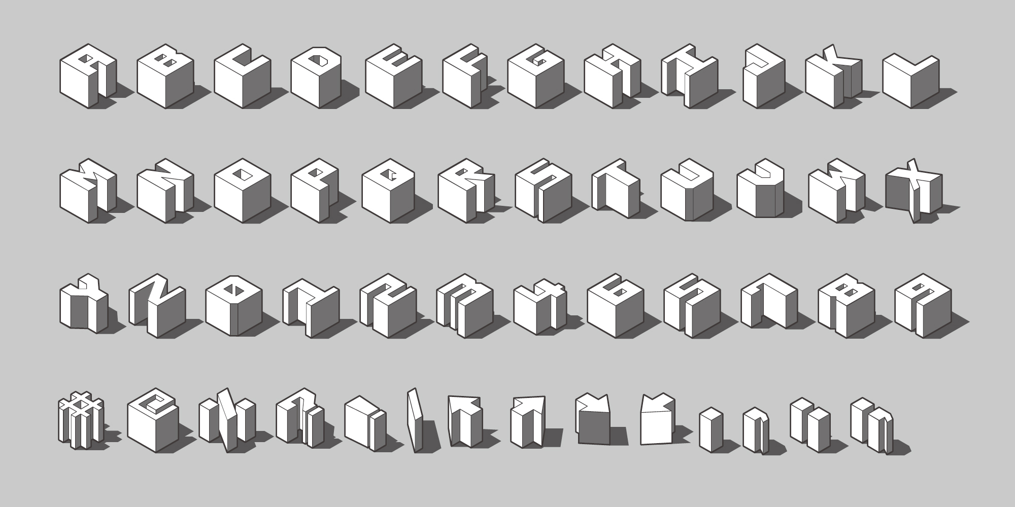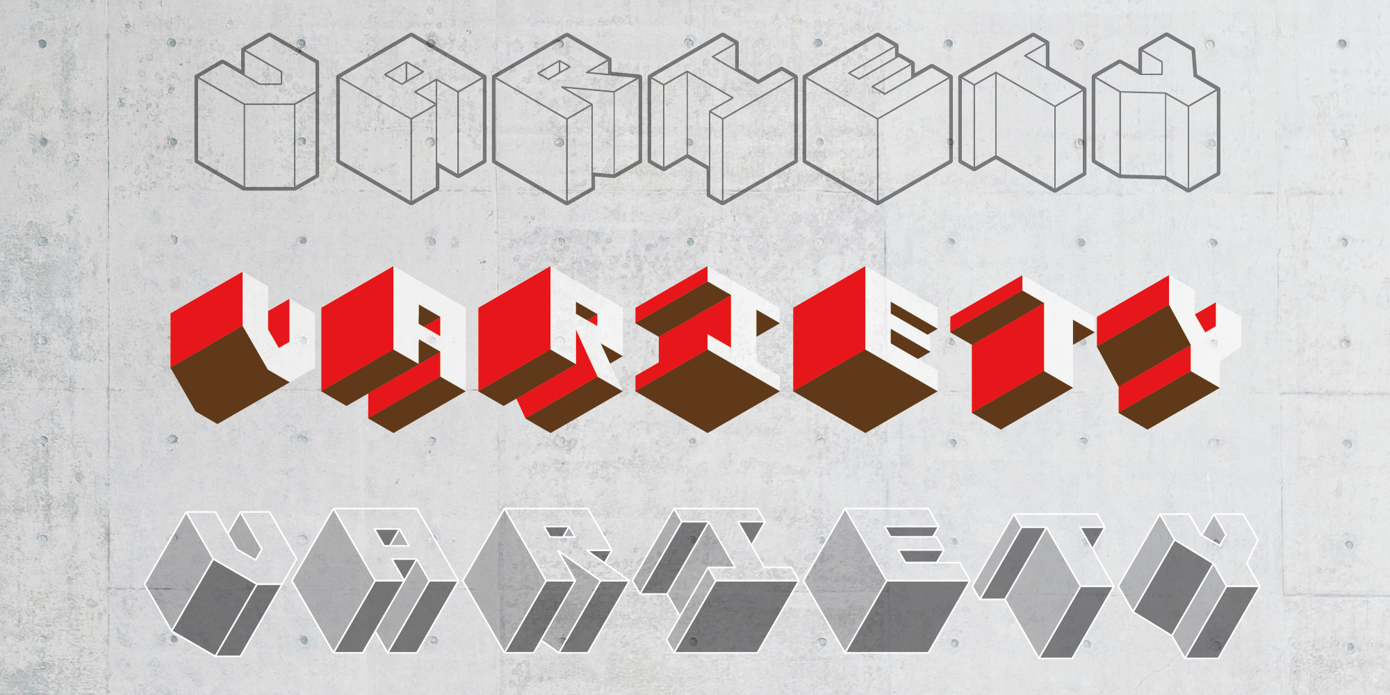 Isocube is a striking, layered isometric display typeface designed for making bold statements in identity design, publication design, advertising, and sign design.