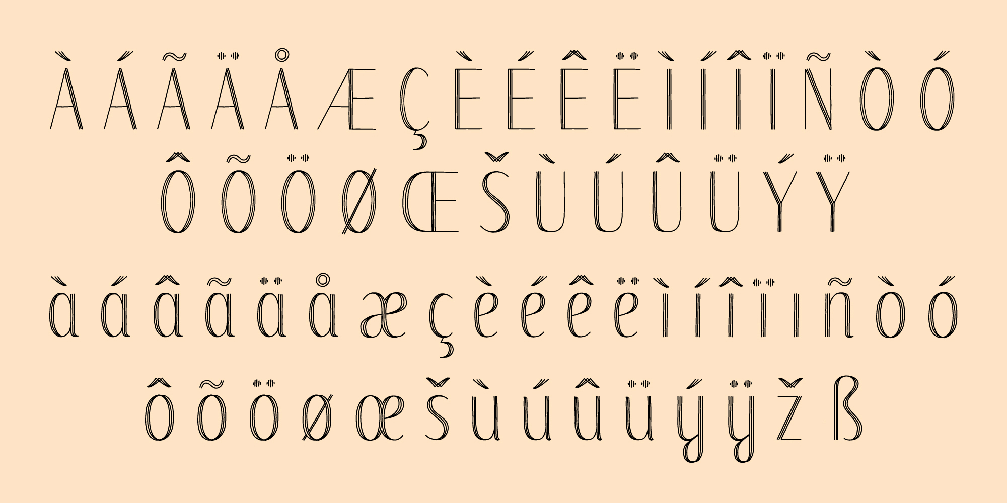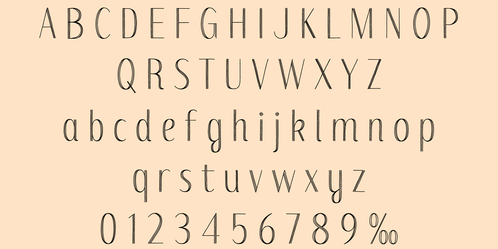 Spritely Hand is a condensed, hand-drawn display font with elegant shapes that feel warm and organic. It was born from a sketching method I used while developing Spritely using parallel strokes to simulate the thicks and thins of pointed-pen calligraphy. The immediacy and warmth of those shapes stayed with me, and I've preserved that organic energy in the finished font.
